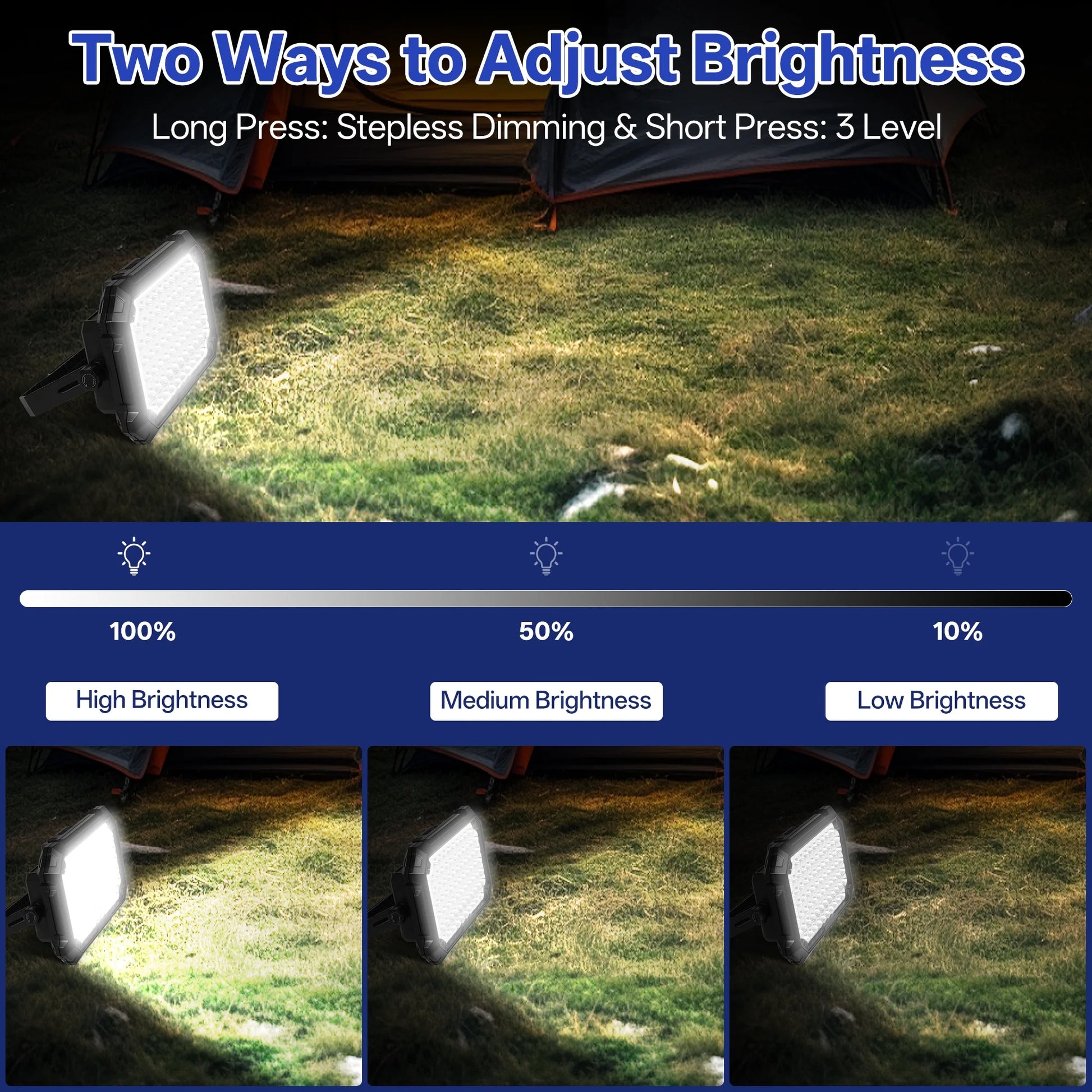 - 🌐 Wide Applications – This versatile LED work light rechargeable floodlight is great for workshops, construction sites, gardens, patios, garages, backyards, doorways, walkways, playgrounds, stadiums, factories, decks, fishing and anywhere else that needs reliable lighting.
